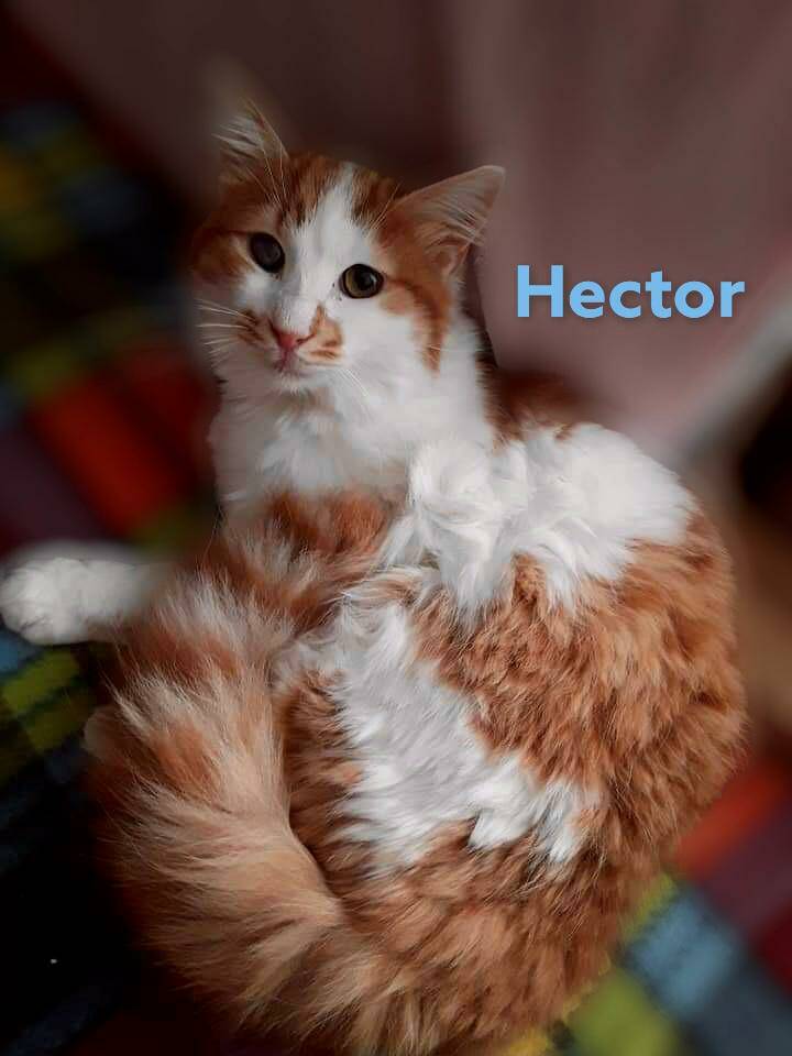 Het verhaal van Hector is zoals veel katten in Athene. Gevonden op straat als kitten en gelukkig bij onze rescuer opgenomen. Hij had toen al een ontsteking aan zijn rechteroog, wat met antibiotica is verholpen. De dierenarts heeft aangegeven dat in hij in zijn rechteroog minder zicht heeft, maar Hector rent rond alsof er niets aan de hand is. Hector is sociaal en is gek op knuffelen. Andere katten vindt hij leuk, maar kleine kinderen is te druk voor hem. Hij is blij dat zijn leven als straatkat voorbij is en wil graag een eigen huisje met lief personeel.