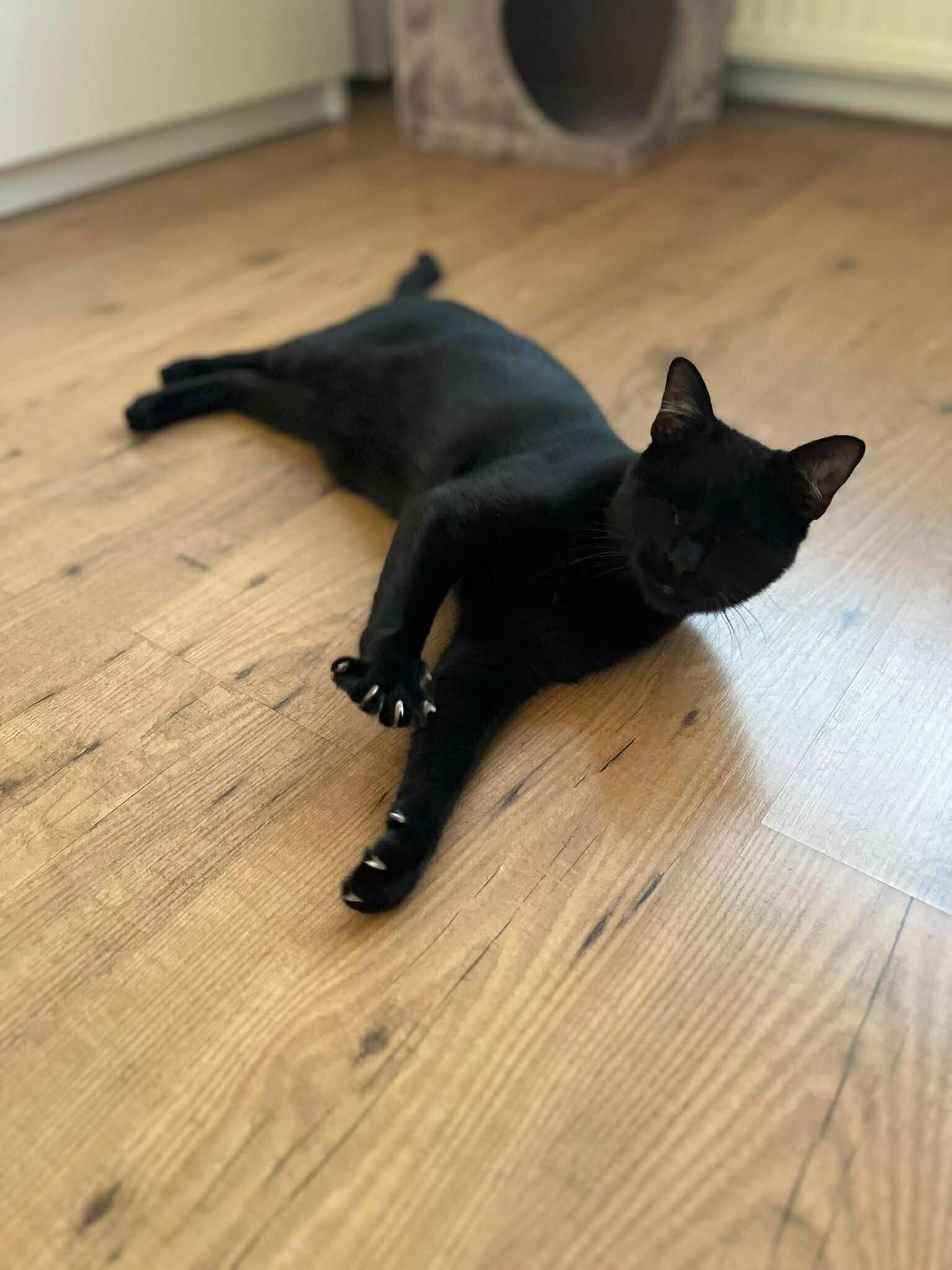 Niemand verwelkomt je zo enthousiast als Salem! Deze lieve kater zit bij de deur te wachten tot je thuiskomt — klaar voor kopjes, gespin en knuffels.